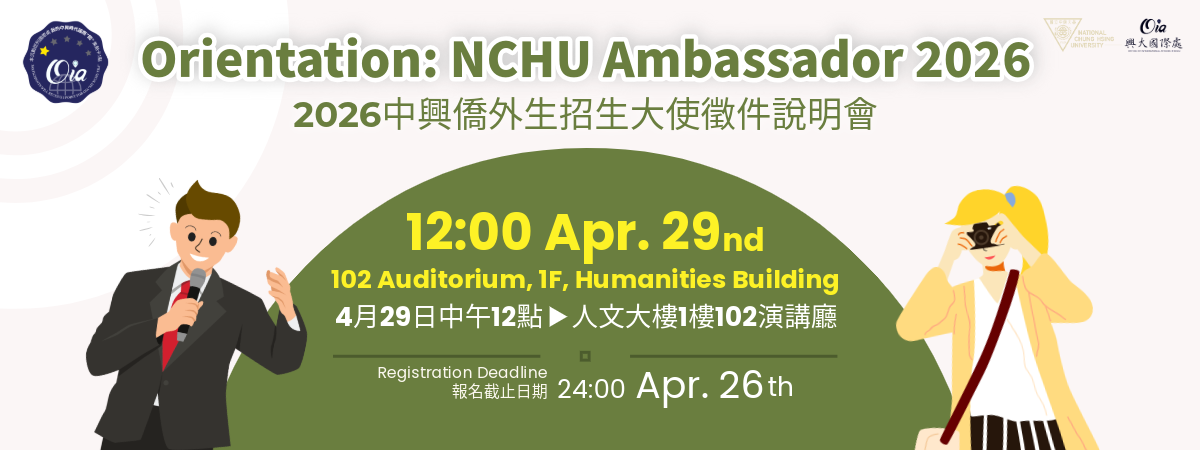 Contact Person: Laurel, Office of International Affairs (laurel@nchu.edu.tw)